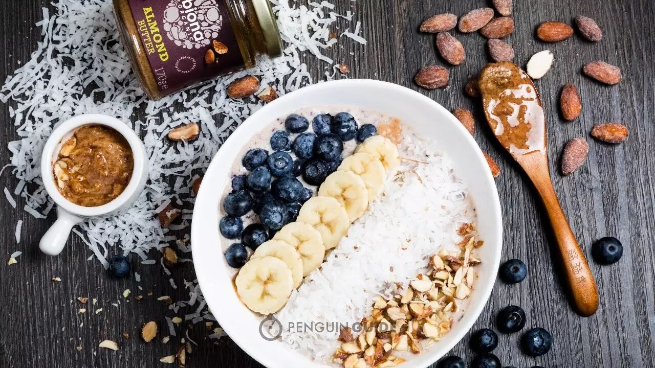 食材:酸奶、杏仁酱、香蕉、蓝莓或其他莓果、坚果、椰子片,或者其他你想放的东西