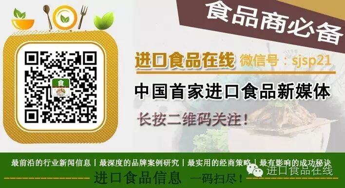 了解更多进口食品行业重磅新闻,请关注进口食品在线(微信号:sjsp21)。联系电话:0571-81903405/15168298386。投稿邮箱:lcx@21food.cn。
