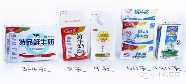 说到性价比,同一品牌同一种类的牛奶虽然营养参数都相同,但就因为包装和保质期的不同也会导致价格相差很多。以北京的三元特品鲜牛奶为例,243ml袋装的是2.2元,250ml盒装的就是4.9元。