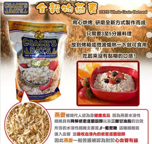 COACH'S 快煮无糖燕麦片(全谷物燕麦) 4斤装(2040g)才79元!你懂的。不抢就没了!