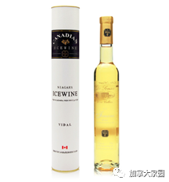 加拿大冰酒(Icewine),是一种甜型葡萄酒,利用气温在零下8℃以下,在葡萄树上自然冰冻的葡萄酿造的葡萄酒。此款冰酒带有浓郁的杏、桃和热带水果的芳香,饮用时可品尝出桂皮和蜂蜜的味道。可与软奶酪、甜点配伍,独饮亦佳。