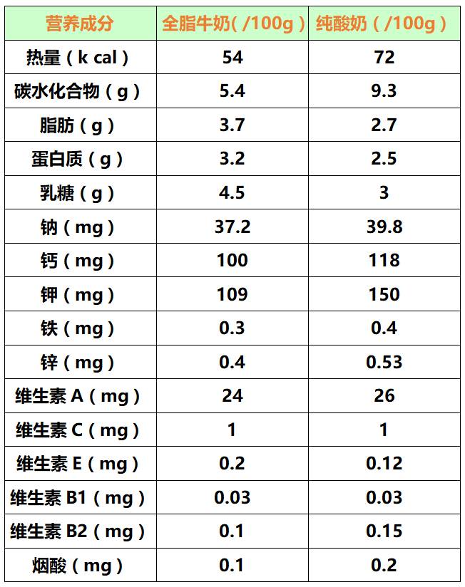 2|牛奶和酸奶营养成分对比