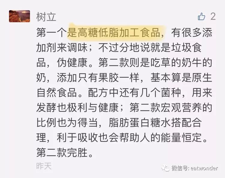 昨天抛出这个《这两瓶酸奶有什么不同?》的问题后,留言区反应热烈,其中有不少非常棒的见解,节选出来和大家分享。
