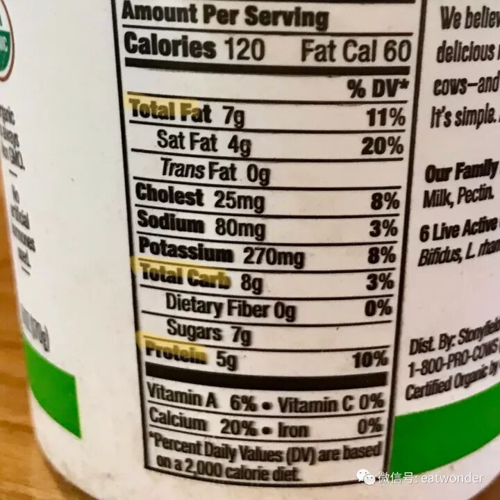 说得太好了,好好的牛奶为什么要脱脂?!(参考「Fat Free? Low Fat? Reduced Fat? 真的能预防肥胖吗?」)为了迎合现代人的糖瘾,酸奶A还添加了13克的糖。看似健康的有机食品,实际是让人发胖的加工食品。