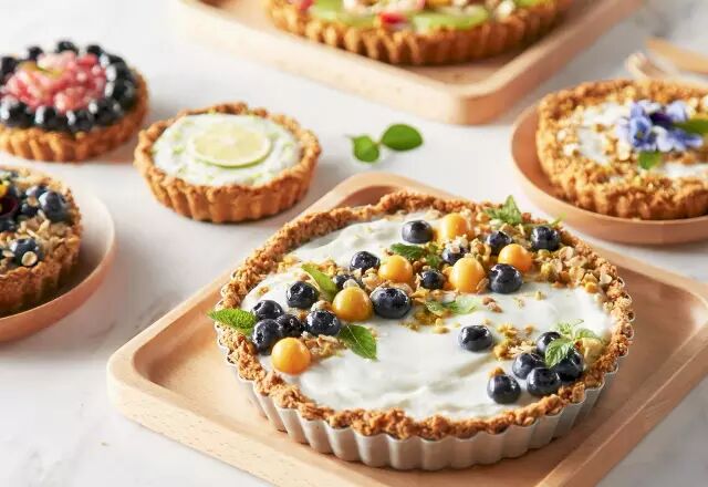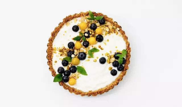 将酸奶装入挞中;