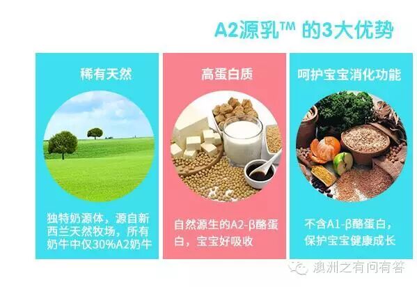 A2白金奶粉,源自基因纯正的新西兰特选A2奶牛。目前,(西方的奶牛中)只有30%的奶牛产生A2酪蛋白,A2酪蛋白珍稀独特,是蛋白质的天然原型,母乳中的β-酪蛋白也是A2型,因此,A2白金奶粉最接近母乳。有助于宝宝的消化吸收及长远的健康。优质奶源地A2奶源体,打造A2奶源新标准!百分之百严格按照新西兰食品安全标准生产及包装,由Asure质量检测中心(百分之百由新西兰政府控制)进行独立的质量检测,因此才能确保每一罐A2奶粉都只含有A2 β-酪蛋白。