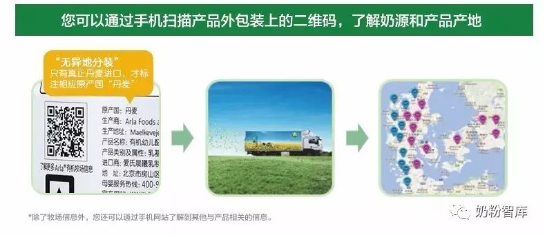Arla 宝贝与我丹麦原装进口,您可以通过手机扫描产品外包装上的二维码,了解奶源和产品产地。
