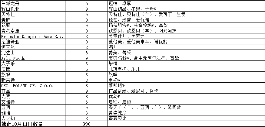 截至今日,已获奶粉配方注册的企业和品牌见下表: