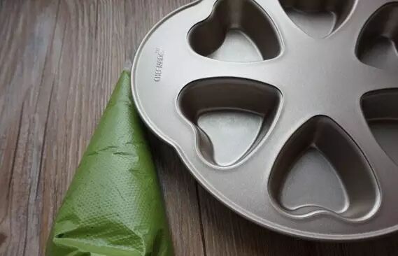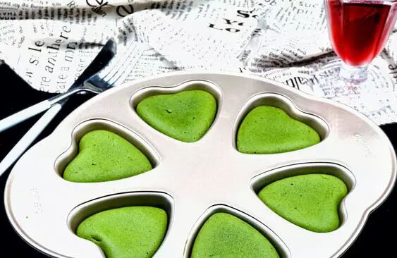 方子自配低热量抹茶小蛋糕。加了抹茶的它不仅带给你清新的视觉,还有清香的味道。这个蛋糕由于不打发蛋,也没有添加泡打粉所以不会像海绵或戚风之类蛋糕那样蓬发,但口感非常的细腻,略紧实。方子所用学厨心形6连不粘膜。