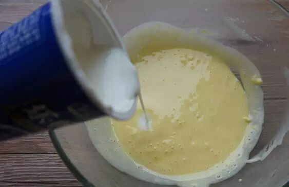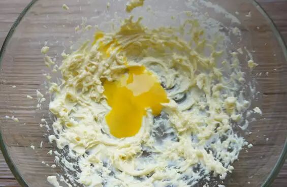 4、奶酪加糖用打蛋器打匀分次加入蛋液,每加一次充分混合打匀再加下一次。最后加完中速打3分钟。