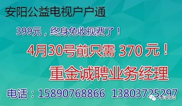 安阳“公益电视户户通”招聘业务经理若干名。待遇丰厚,工资面议,有经验者,择优录用。