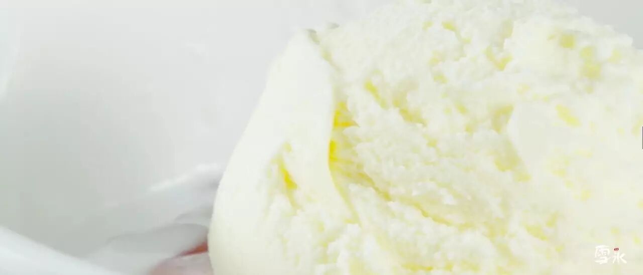 淋完草莓酱后,再挖一个半球香草冰淇淋放在冰的中间。