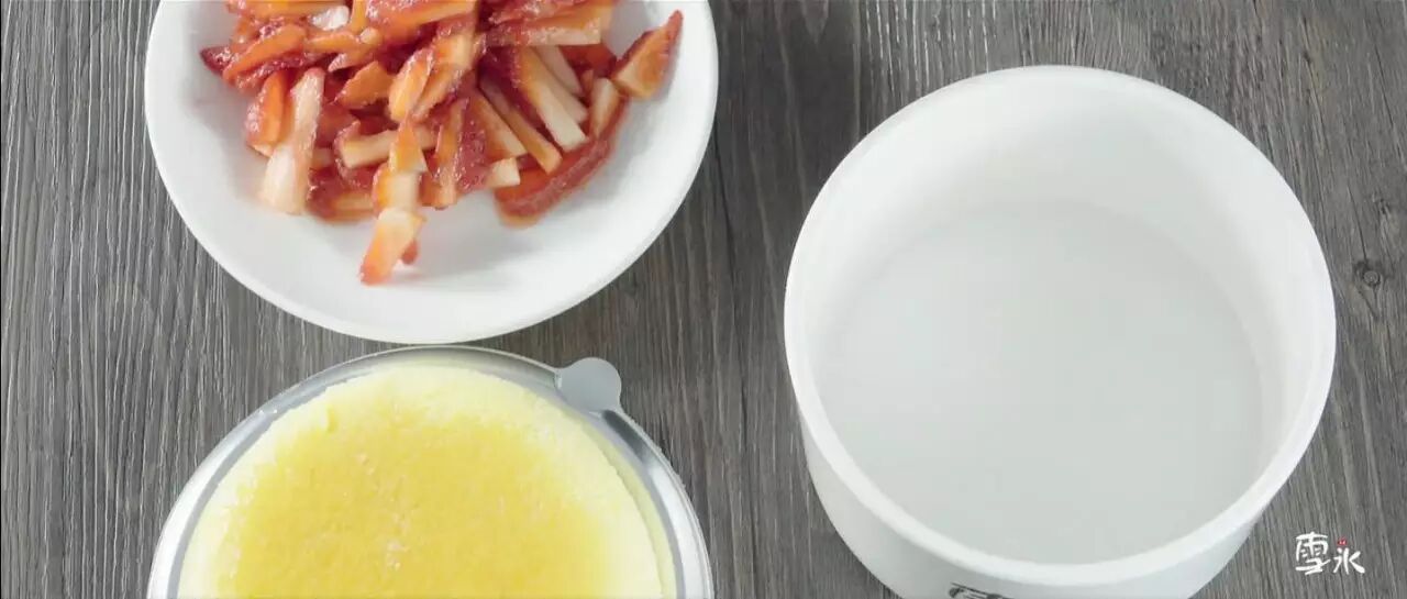 1片2cm轻乳酪 新鲜草莓条 酸奶口味的冰