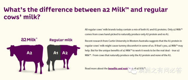 所有普通的牛奶品牌的今天包含混合的A1和A2蛋白。只有™A2牛奶来自奶牛挑自然产生只有A2蛋白没有A1。