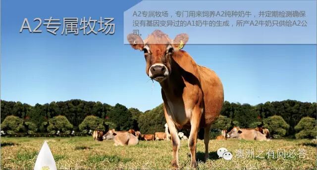 艾尔牧场里的奶牛有别于其它牧场里的奶牛,它们都是经过精心挑选的特殊奶牛品种,从而可以天然的产出富含a2型β-酪蛋白的牛奶。a2牛奶也因此得名。