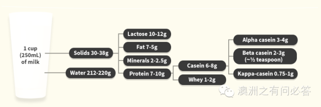 牛奶中蛋白质主要有乳清蛋白和酪蛋白两大类,酪蛋白中又分为Beta酪蛋白、Keppa酪蛋白和Alpha酪蛋白,其中Beta酪蛋白约占蛋白质总量的30%,是氨基酸的重要来源,同时在体内传递重要的矿物质(如钙和磷等),促进其消化吸收。