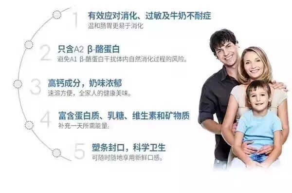 1)全球独一无二的A2奶源的成人奶粉,有效应对消化、过敏及牛奶不耐症。