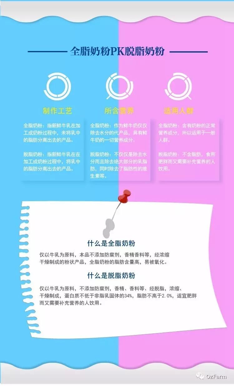 奶粉选脱脂奶粉还是全脂奶粉?这个疑虑我们得先从脱脂奶粉和全脂奶粉的区别说起。