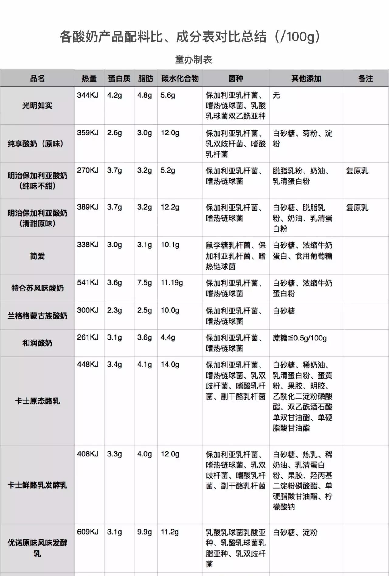 ps:酸奶成分表里面没有标明钙,不代表不含有钙,酸奶是含有丰富钙质的食物。