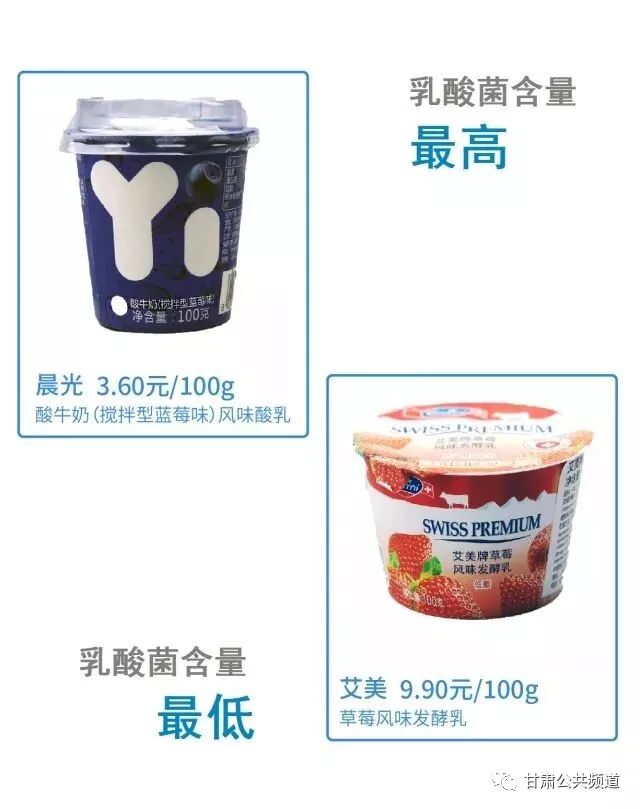 其中,乳酸菌数最高77亿CFU/g,为晨光的酸牛奶(搅拌型蓝莓味)风味酸乳。 其中进口品牌艾美草莓风味发酵乳乳酸菌含量只有1900万CFU/g。