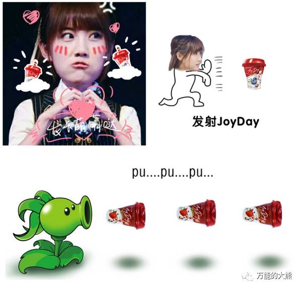 建立具有情感连接的“人设”形象之后,JoyDay“豆趣”能力继续放大。在总决选开始前紧张拉票的一周,网友粉丝团竟自发收集JoyDay酸奶趴的豆趣视频素材,大开脑洞重新剪辑,以鬼畜视频的新颖形式在网络上掀起一股豆趣鬼畜的热潮。由此可见,JoyDay的“豆趣”形象已深入SNH48粉丝心里,成功圈粉,甚至触发粉丝自制“豆趣”素材的兴趣。