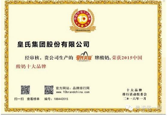 “2015年度中国酸奶十大品牌评选”活动日前落下帷幕,来自广西本土企业皇氏集团股份有限公司的皇氏乳业牌酸奶荣获2015年度中国酸奶十大品牌。