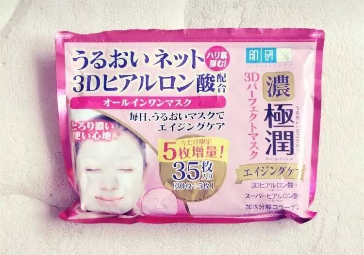 一包有 35 枚,平均每枚不到 2 块钱!精华液是奶油质地,比较厚重,内含有双倍玻尿酸保湿成分,补水效果特别好,长期使用还有让皮肤透亮的效果。但面膜纸相对厚,不是那么服帖。
