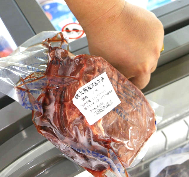 霖肉,产自澳洲,原价49元/斤,现特价35.8元/斤。霖肉就是牛腿部膝盖位置的肉,这个位置经常运动,肉肯定很有嚼劲,煎牛排一流。