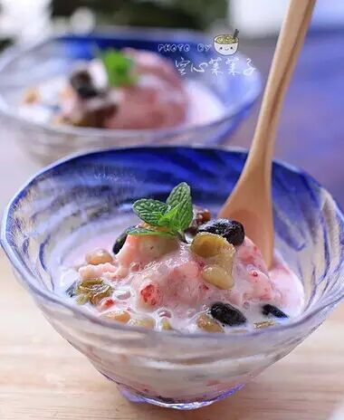 5.装入你喜欢的容器,表面搭配一些你喜欢的水果和竖果,就很高大上了。