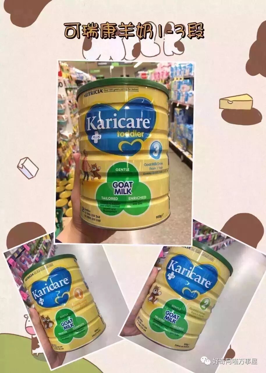 Karicare可瑞康羊奶粉是澳洲和新西兰唯一一种以羊奶为基础的婴幼儿奶粉,也比牛奶粉价位贵很多,羊奶可谓是奶中之王了!