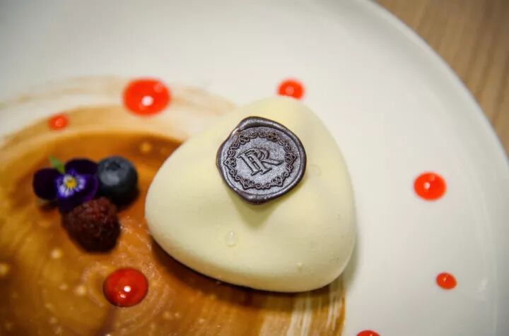 无锡的冬天有些阴冷潮湿,所以为了让客人能品尝完美的调温巧克力,稍微花费了Jiabin一些时间,最后它以荣品logo的形式出现在这朵重新组合以不同形态诞生的提拉米苏上。