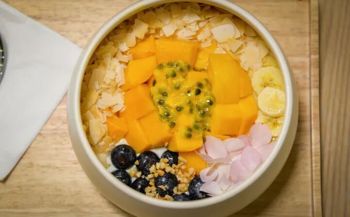 果昔碗的口感像是冰淇淋,主要概念是素食有机,酸奶里面加上燕麦片、水果、坚果等,当代餐都是极好的~水果都是时令搭配,店内一共四种果昔碗对应四种季节,而现在最畅销并一直供应的是“夏”与“秋”。