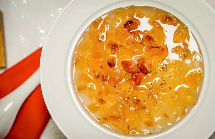 颜值仙气十足,恰似琥珀一般的质地。粘稠的桂银耳、透明的桃胶加上泡开的雪莲子,三位一体满满的胶原蛋白和精神元气,保证敷几张面膜都不如这一碗来的滋养。