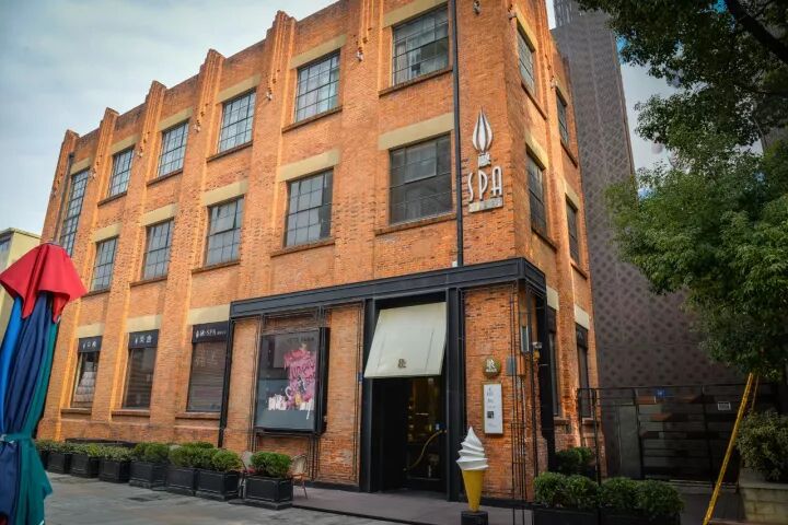 "荣品生活"的地址很隐蔽,它就在融SPA一楼,只有一个钟一样大的logo,不仔细看就会错过,开车来的可以在地下停车找商业街2号电梯,直达地面。