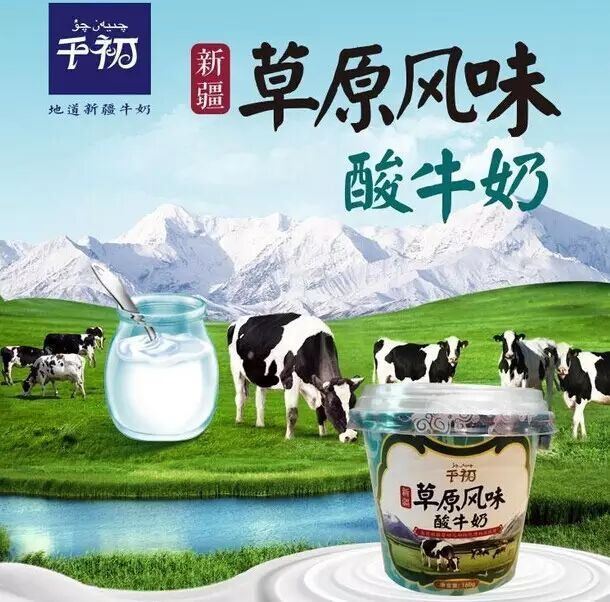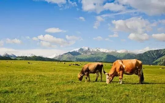 2、新疆的牛儿喝着天山雪水,吃着天然草料,产的奶质量高。