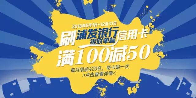 1、在温都猫线上刷浦发银行银联单标信用卡满100减50!