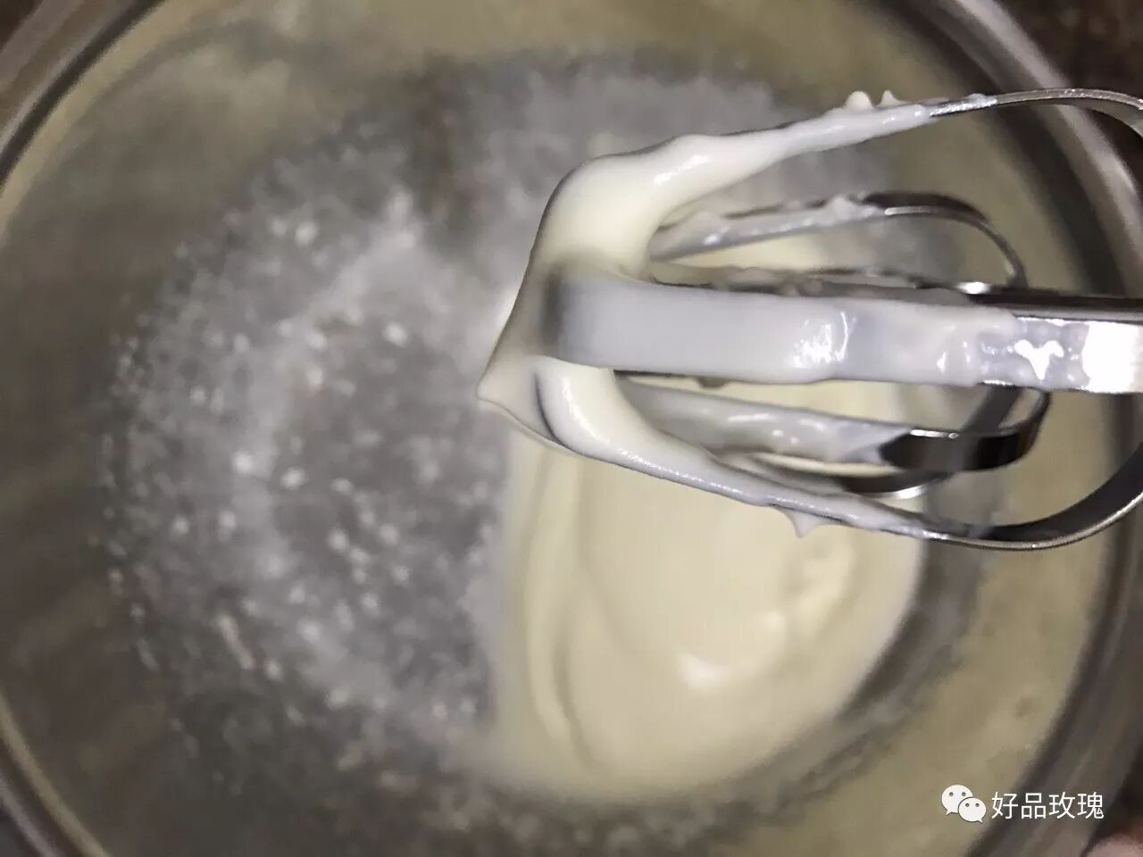 8. 提起打蛋器,尖端稍微挺立的样子,放入冰箱冷藏备用