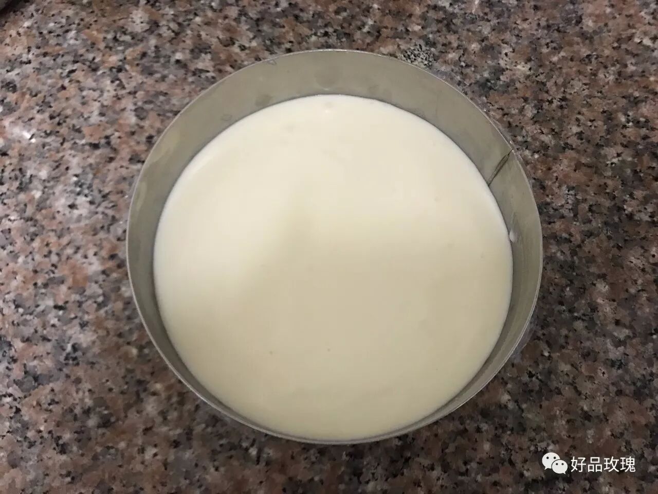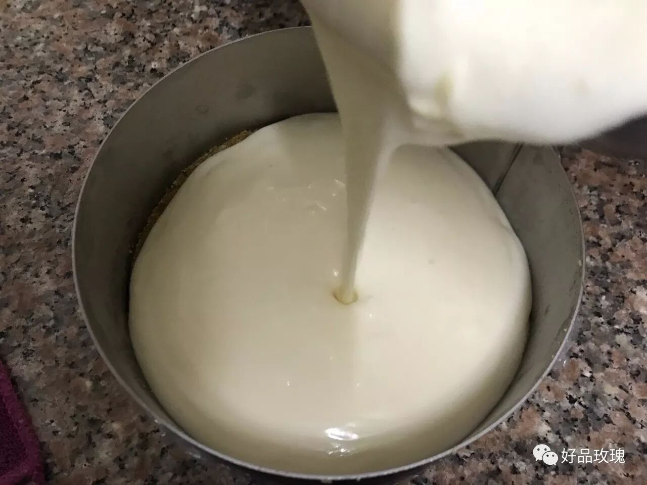 25. 晾凉后,倒入凝固好的酸奶乳酪慕斯上面