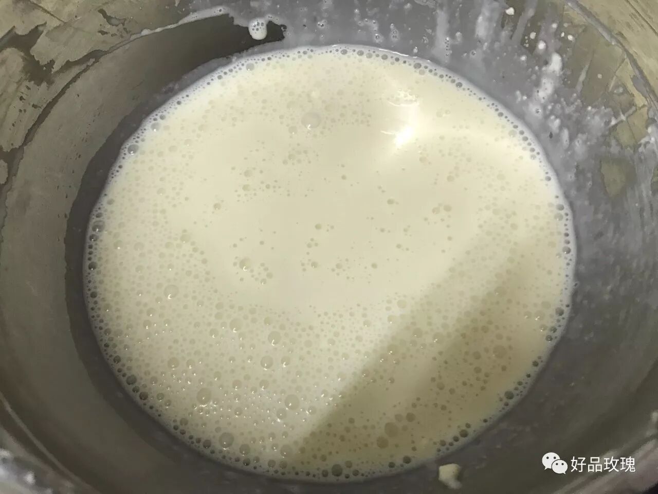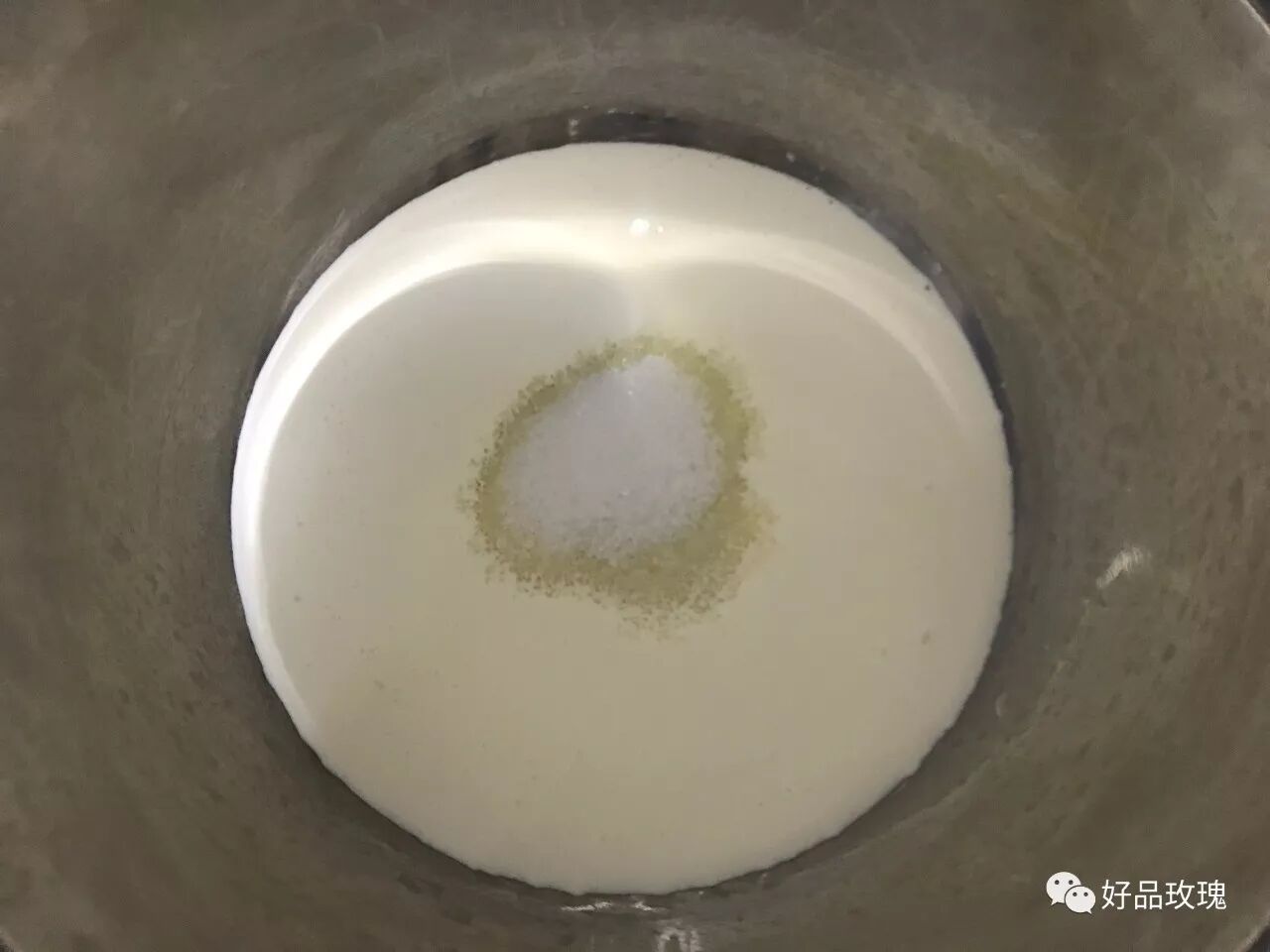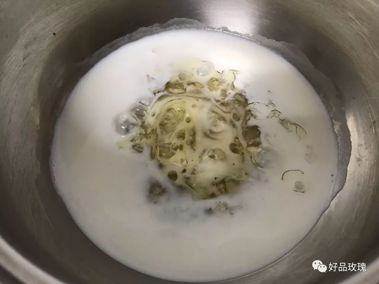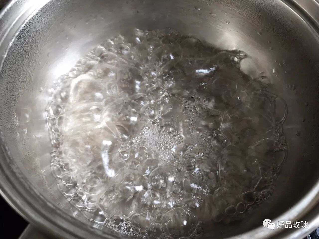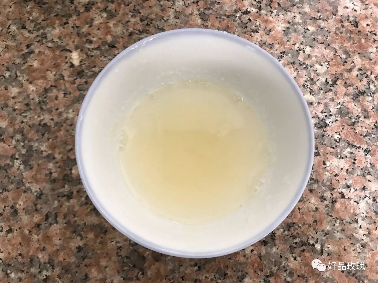 24. 将吉利丁水倒入玫瑰花水中搅拌均匀