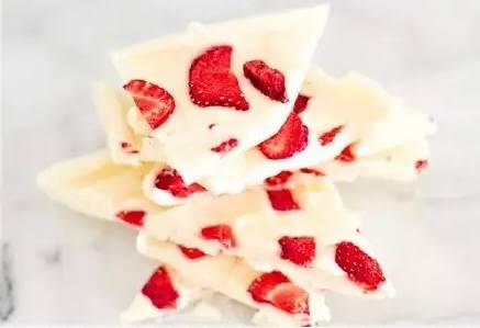 取出酸奶碎片,揭掉油纸,掰成适合大小的碎片,装入容器