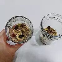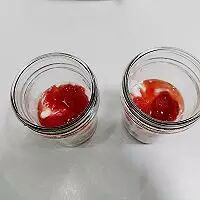 1. 耐热玻璃罐或杯子用热水消毒后放入适量的草莓果酱,自制的草莓果酱质地不会很浓稠所以很适合做这款隔夜麦片,如果选择市售的果酱会很浓稠,我用的是自制的无糖酸奶所以加入了草莓果酱,如果用市售的甜酸奶就要考虑个人是否喜欢偏甜的隔夜麦片,也可以选择玻璃罐底部不放入果酱直接放酸奶。