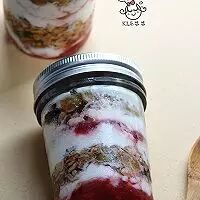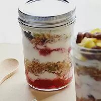 5. 步骤只要重复就可以了,我通常是三层果酱、三层麦片、四层酸奶,这样隔夜酸奶麦片就做好了,建议底部一定要先铺上酸奶,这样放入的麦片才不会很干。做好后密封入冰箱冷藏保鲜,第二天早晨就可以当做早餐吃,也可以当做夜宵。