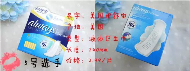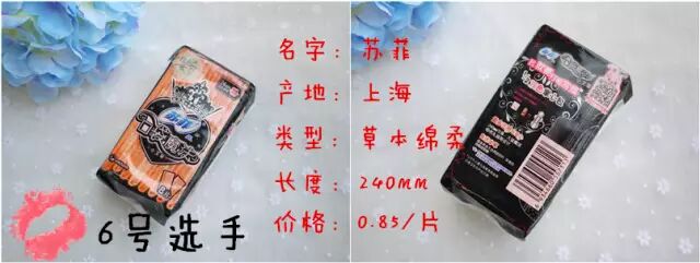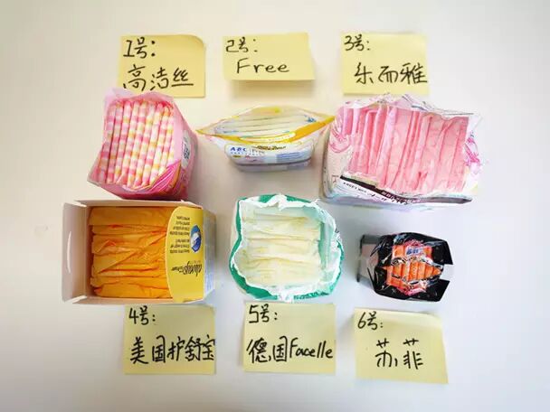 这五个方面对以下六款卫生巾进行一个综合排名,