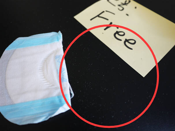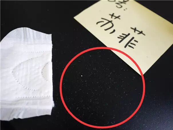 光看外面肯定不准确,我们要深入各个姨妈巾内部看组织才行!据说有人子宫瘤切开后里面都是卫生巾的毛毛!宝宝好怕!因为大多数姨妈巾是有棉质类组成,如果飞出的毛絮过多,有可能在我们使用期间这些毛毛都飞到我们的生殖系统里,自身排不出来,会直接导致各种妇科疾病!测试方法:把姨妈巾剪开后各弹十下,在黑色背景下把毛毛看得清清楚楚!