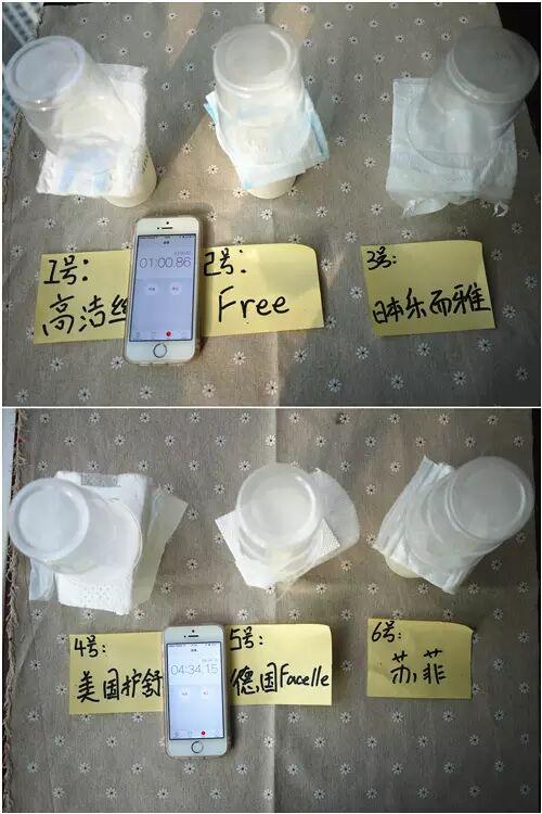 测试方法:我们把卫生巾最上面一层剥开来,在一次性纸杯里盛热水,将撕下来的卫生巾覆盖在盛了热水的纸杯上,然后扣上透明沸腾杯。几分钟后将透明沸腾杯拿下来,如果沸腾杯内雾气越多,说明透气性越好。