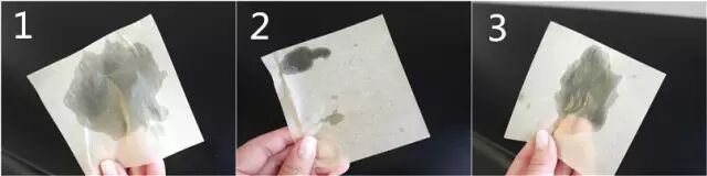 十管水下去后,背面都湿透了,看看吸水纸,几乎一半变透明。