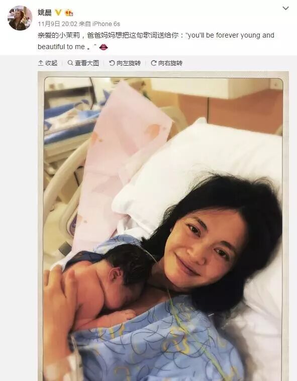 对于前不久出生的女儿,则被姚晨取名“小茉莉”,这里面也是有故事的~