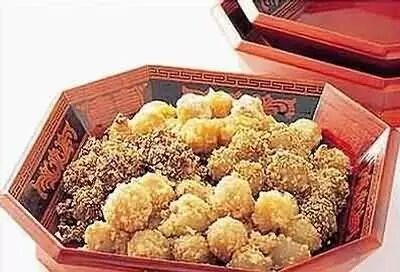 美国汤圆:小麦炒黄与猪肉适量加葱、盐、色拉等做成馅丸,包糯米团后,或煮或煎食之。