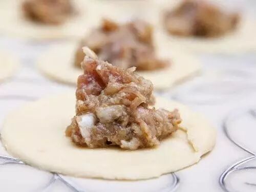 俄罗斯饺子:面团一般由面粉、鸡蛋和水混合制成,饺子馅由碎牛肉、猪肉、洋葱混合而成。