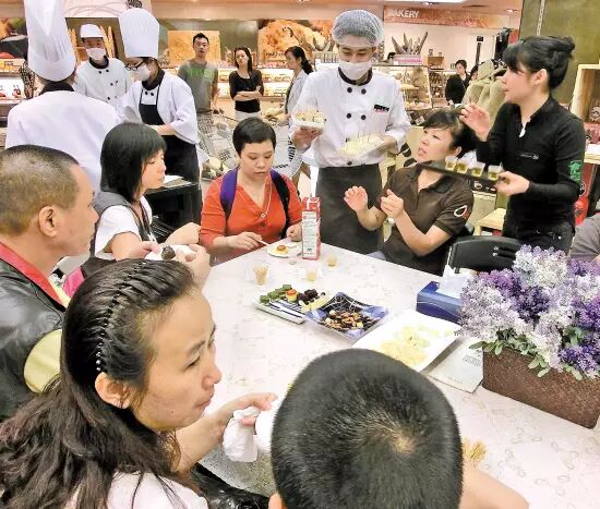 去附近的大型超市。联华,大润发……里面大多数都会有各种试吃,各种小食,面包,饮料,新鲜水果等,来回多溜达几次也就吃饱了……